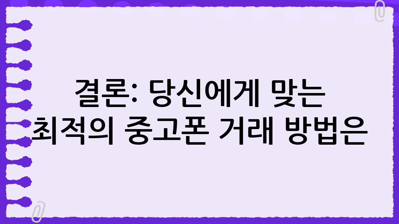 결론: 당신에게 맞는 최적의 중고폰 거래 방법은?