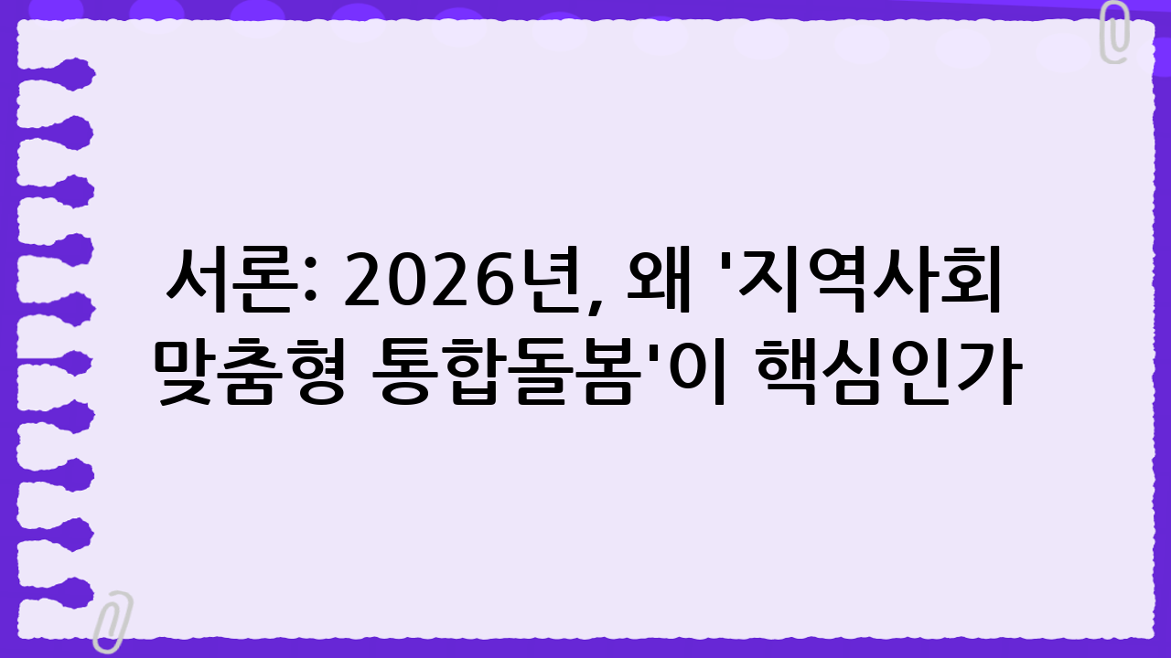 서론: 2026년, 왜 '지역사회 맞춤형 통합돌봄'이 핵심인가?