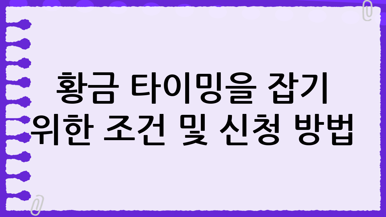 황금 타이밍을 잡기 위한 조건 및 신청 방법